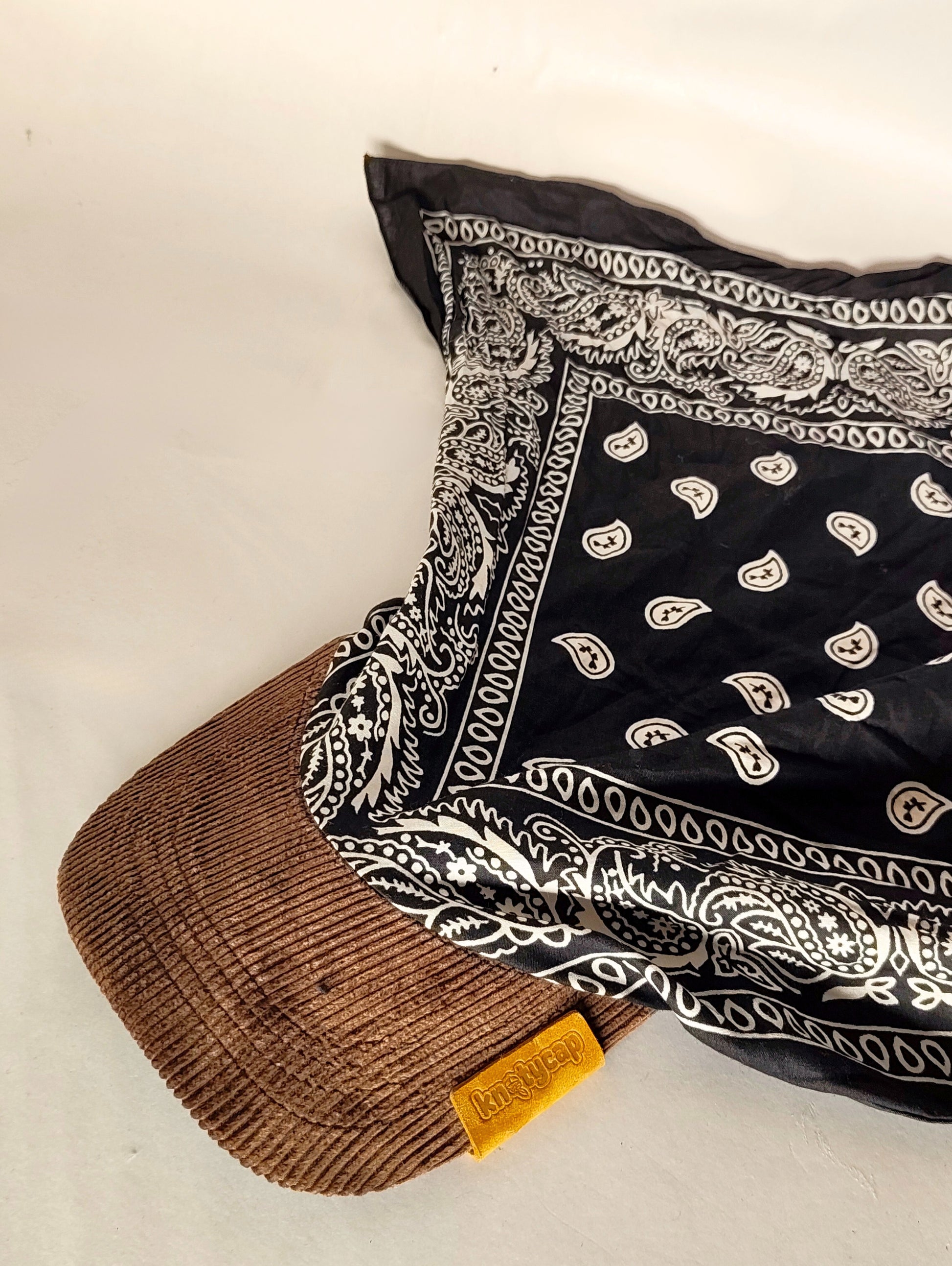 Kapri™ – Brown Corduroy Brim × Black Printed Bandana (OG Drop)