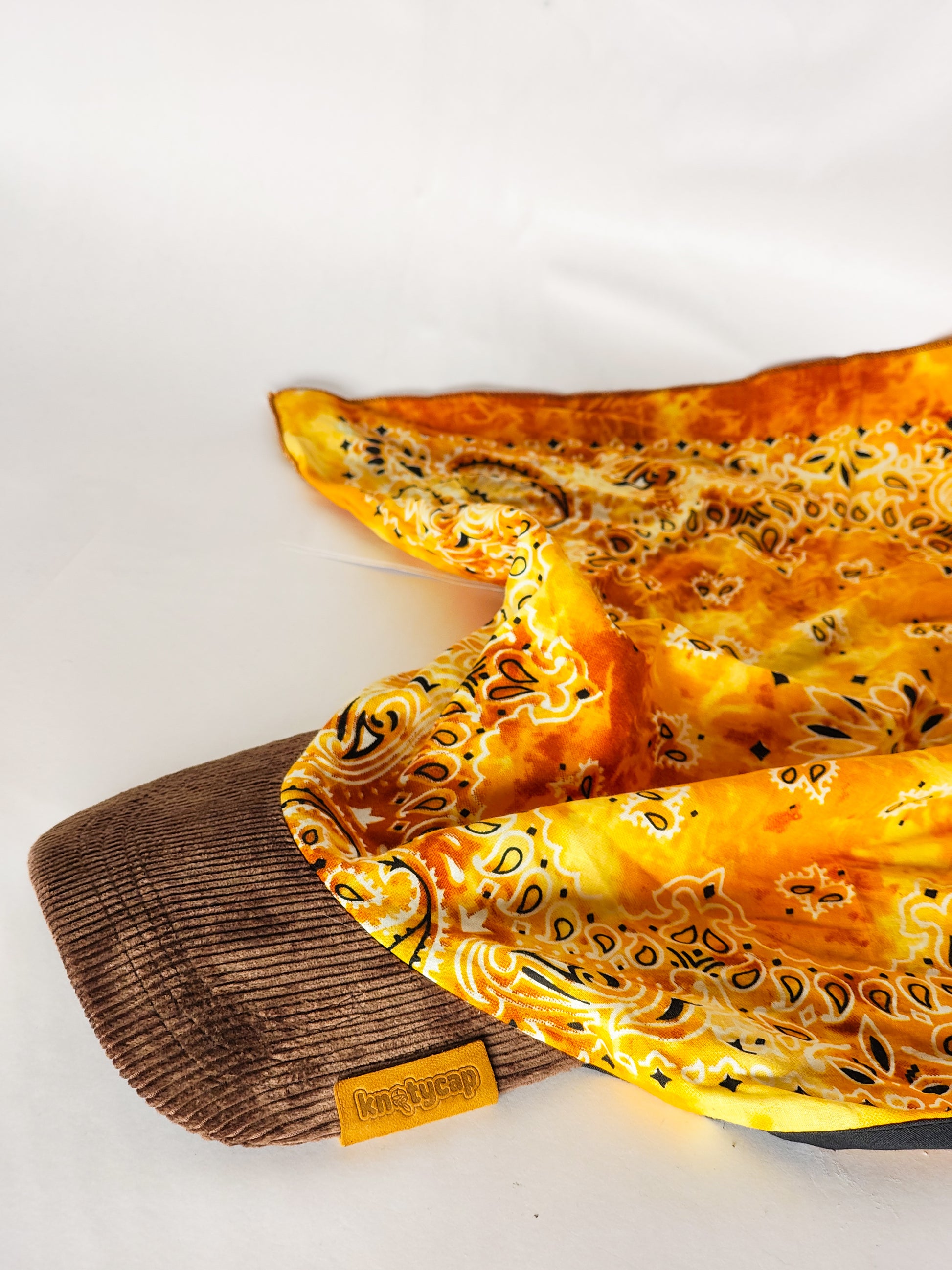 Kapri™ – Brown Corduroy Brim × Canary Yellow Printed Bandana (OG Drop)